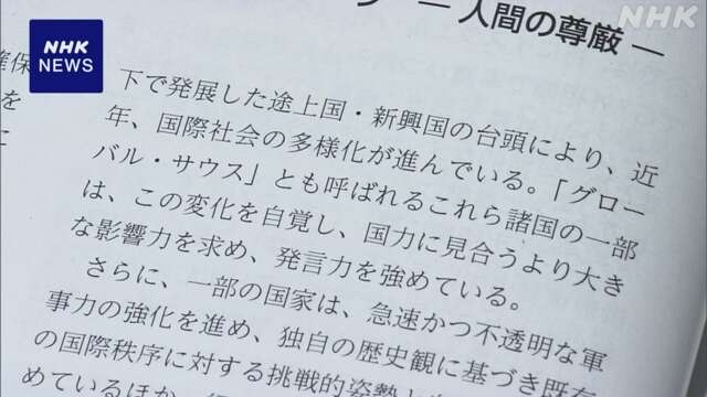 Một số nội dung trong Sách Xanh Ngoại giao Nhật Bản 2024. Ảnh: NHK |