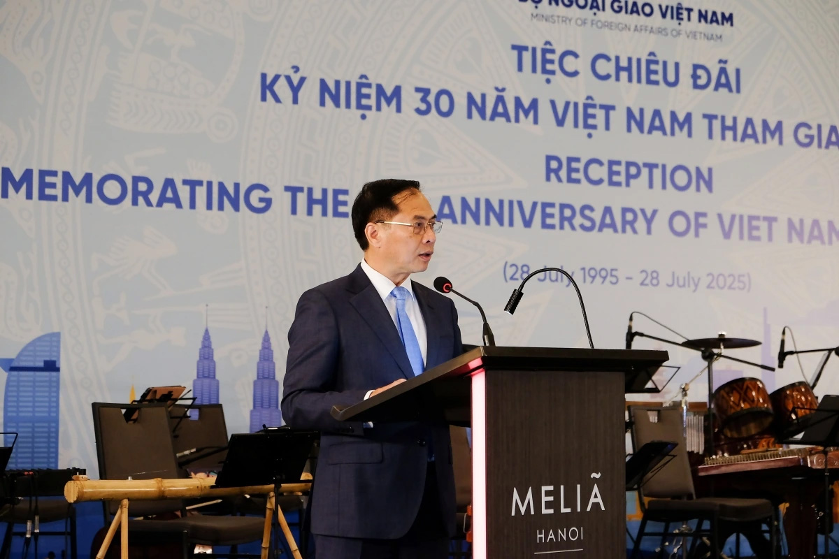 Phát biểu tại buổi tiệc chiêu đãi nhân kỷ niệm 30 năm Việt Nam gia nhập ASEAN (28/7/1995-28/7/2025), diễn ra tối qua (28/7), tại Hà Nội, Phó Thủ tướng, Bộ trưởng Ngoại giao Bùi Thanh Sơn nhấn mạnh Việt Nam gia nhập ASEAN năm 1995 là một dấu mốc lịch sử, thể hiện cam kết mạnh mẽ với hòa bình, ổn định và phát triển khu vực. Việt Nam đã đến với ASEAN bằng tinh thần cầu thị, trách nhiệm, và quan trọng hơn cả là cam kết gắn bó lâu dài.