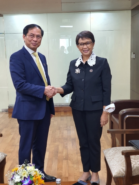 Tại cuộc gặp với Bộ trưởng Ngoại giao Indonesia Retno Marsudi, hai bên nhất trí phối hợp chuẩn bị tốt cho các chuyến thăm cấp cao và Kỳ họp lần thứ 4 Ủy ban hợp tác song phương Việt Nam – Indonesia trong năm 2022. Cùng với đó, nhất trí thúc đẩy các cơ quan bộ, ngành hai nước phối hợp chặt chẽ, đặc biệt là trong lĩnh vực kinh tế - thương mại, nhằm mang lại những kết quả cụ thể cho người dân và doanh nghiệp hai nước. Bộ trưởng hai nước cũng thống nhất cần tiếp cận và giải quyết các vấn đề khu vực và quốc tế trên cơ sở tôn trọng luật pháp quốc tế vì mục tiêu chung là hoà bình, ổn định, hợp tác và phát triển.
