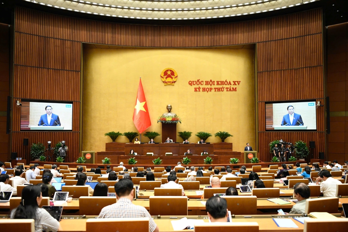 Tổng Bí thư Tô Lâm và Thủ tướng Phạm Minh Chính tại phiên chất vấn và trả lời chất vấn của kỳ họp thứ 8, Quốc hội khóa XV, chiều 12/11. Ảnh: VGP/Nhật Bắc |