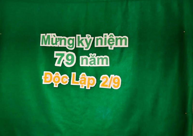 Cùng với lá cờ đỏ sao vàng được treo trang trọng trong phòng khách, ông bà còn kỉ niệm ngày lễ lớn của dân tộc qua những dòng chữ này |