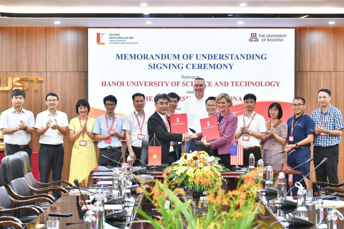 Ngày 01/08/2024, Đại học Bách khoa Hà Nội ký biên bản ghi nhớ hợp tác với Đại học Arizona (Hoa Kỳ) nhằm đẩy mạnh hợp tác trong lĩnh vực bán dẫn và các hoạt động liên quan đến giáo dục STEM. Ảnh: HUST |
