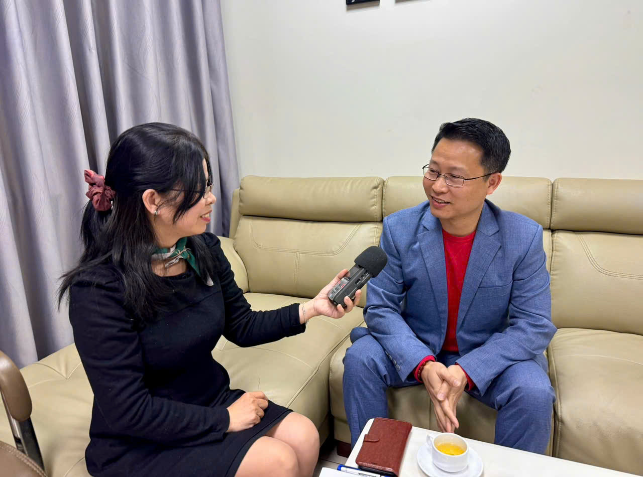 Phóng viên VOV5 phỏng vấn GS. TS. Phan Mạnh Hưởng. |