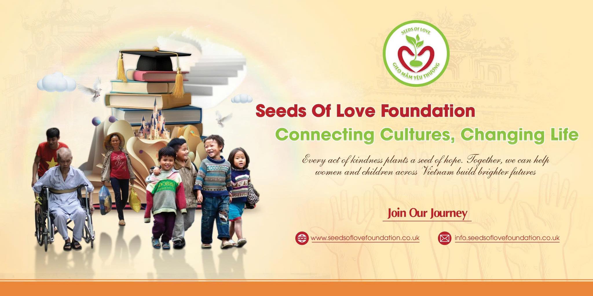 Sau chuyến đi Xuân An Vui, tôi trở lại Anh với nhiều suy nghĩ. Tôi cứ trăn trở mãi rằng nếu như mình chỉ làm thiện nguyện theo từng đợt nhỏ thì chưa đủ. Tôi muốn tạo ra một tổ chức có pháp lý rõ ràng để có thể hoạt động bền vững và minh bạch hơn để ai cũng có thể chung tay, yên tâm gửi gắm lòng tin. Thế là tôi bắt đầu xin pháp lý cho tổ chức “Gieo mẩm yêu thương” với tên tiếng Anh là “Seeds of Love Foundation”. Nhưng thật sự quá trình đó vô cùng gian nan. Vì đây là một tổ chức do người Việt sáng lập nên mọi quy trình, quy định đều phải tuân thủ rất nghiêm ngặt theo luật của nước Anh. Hồ sơ tôi nộp lên bị từ chối nhiều lần. Có lúc tôi cũng thấy nản, thấy mệt, nhưng rồi mỗi lần nghĩ đến những ánh mắt biết ơn trong những chuyến đi thiện nguyện, tôi lại tự nhủ rằng nếu như mình dừng lại thì ai sẽ tiếp tục gieo những hạt mầm này đây?! Vậy là tôi lại cố gắng thêm một chút, học hỏi thêm một chút, viết lại hồ sơ, chỉnh sửa từng chi tiết theo đúng yêu cầu... May mắn là sau rất nhiều lần kiên trì, cuối cùng tôi cũng được chính phủ Anh công nhận “Seeds of Love Foundation” là một tổ chức từ thiện hợp pháp. Khoảnh khắc nhận được email xác nhận, tôi thật sự xúc động, vừa vui vừa tự hào. Không phải vì mình làm được điều lớn lao mà vì từ nay người Việt mình có một tổ chức thiện nguyện được pháp luật Anh công nhận, một nơi để cùng nhau làm việc tốt một cách chính danh và lâu dài.