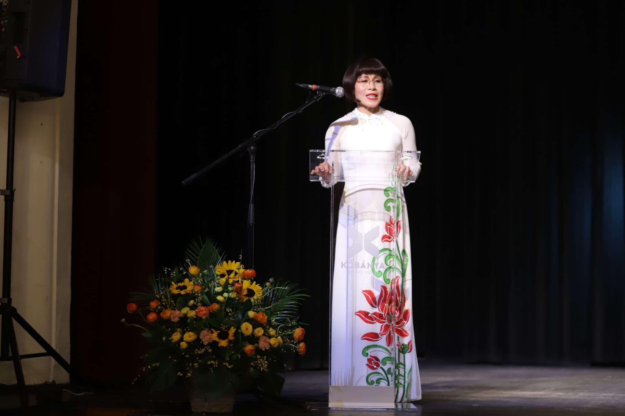 Chị Phan Bích Thiện, Chủ tịch Diễn đàn Phụ nữ Việt Nam tại Châu Âu phát biểu tại một sự kiện |