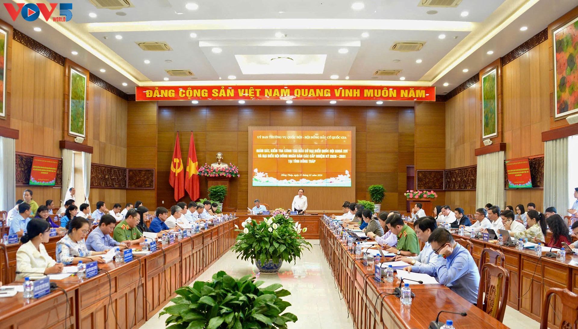 Sáng nay (31/1), tại tỉnh Đồng Tháp, Chủ tịch Quốc hội Trần Thanh Mẫn, Chủ tịch Hội đồng Bầu cử quốc gia, cùng đoàn giám sát, làm việc với Ủy ban Bầu cử tỉnh Đồng Tháp về công tác bầu cử Đại biểu Quốc hội khoá XVI và Đại biểu Hội đồng nhân dân (HĐND) các cấp nhiệm kỳ 2026 - 2031.