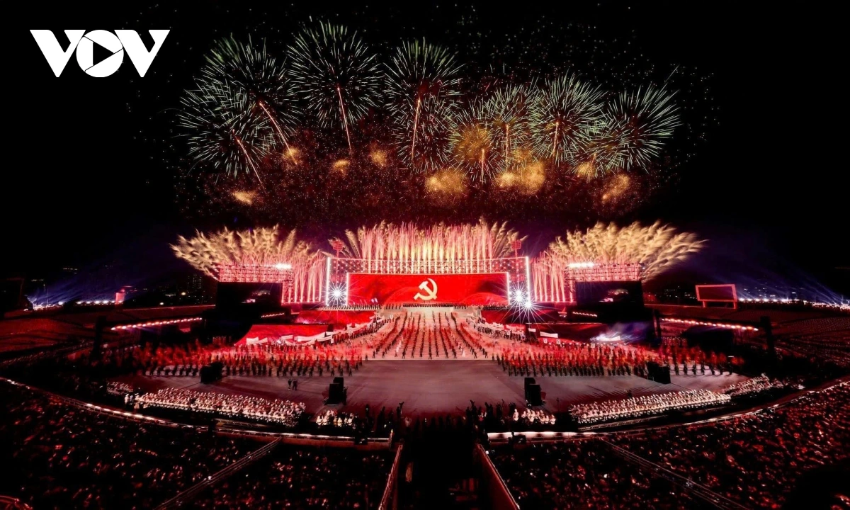 Dưới lá cờ vẻ vang của Đảng, toàn dân tộc Việt Nam đoàn kết, chung sức để thực hiện thành công Nghị quyết Đại hội XIV. Ảnh: VOV |