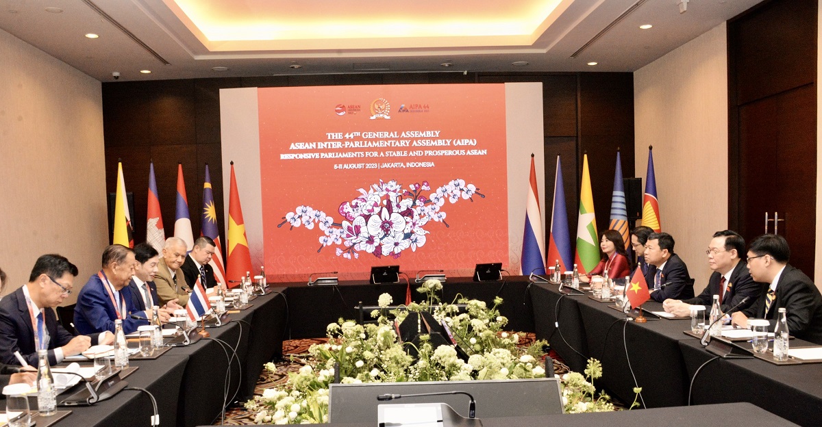 Nhân dịp tham dự Đại hội đồng Liên nghị viện các quốc gia Đông Nam Á lần thứ 44 (AIPA-44) tại Thủ đô Jakarta, Indonesia, sáng nay (7/8), Chủ tịch Quốc hội Vương Đình Huệ đã có cuộc gặp với Chủ tịch Hạ viện Thái Lan Wan Muhamad Noor Matha.