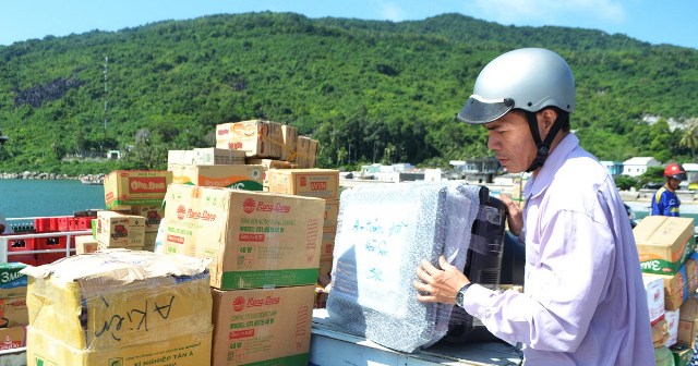 Hàng hóa phục vụ tiêu dùng dịp Tết Quý Mão được chở ra đảo Hòn Tre (huyện Kiên Hải). Ảnh: Quốc Bình/sggp.org.vn |