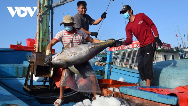 Ngư dân Bình Định trúng cá ngừ đại dương vào đầu năm 2022. Nguồn: VOV |