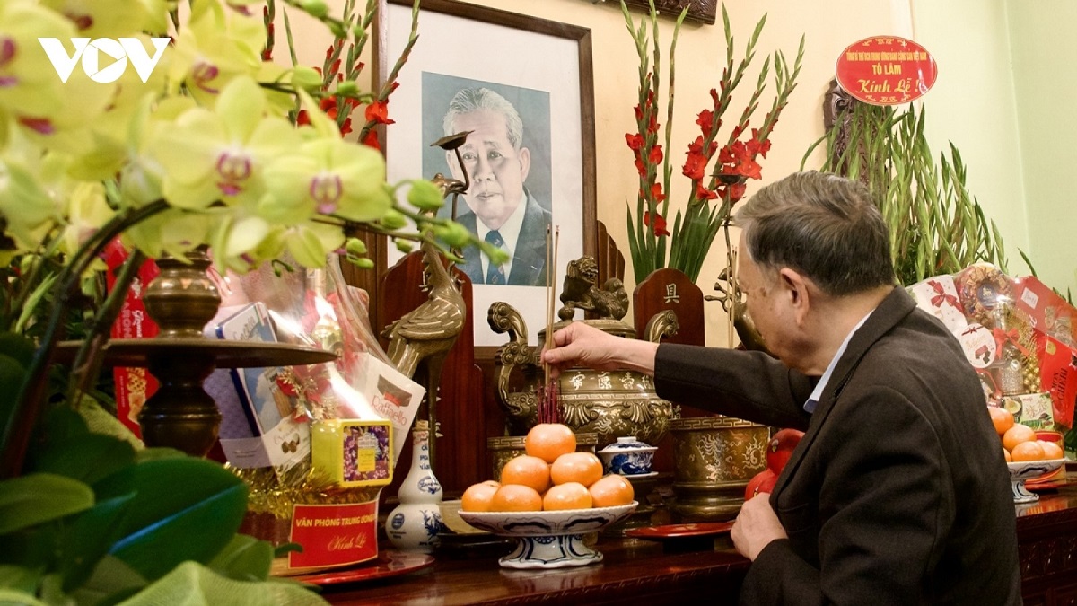 Nhân dịp Tết Nguyên đán Ất Tỵ 2025, chiều 16/1, tại Hà Nội, Tổng Bí thư Tô Lâm đến thắp hương tưởng nhớ các Tổng Bí thư Lê Duẩn, Đỗ Mười, Lê Khả Phiêu tại nhà riêng.