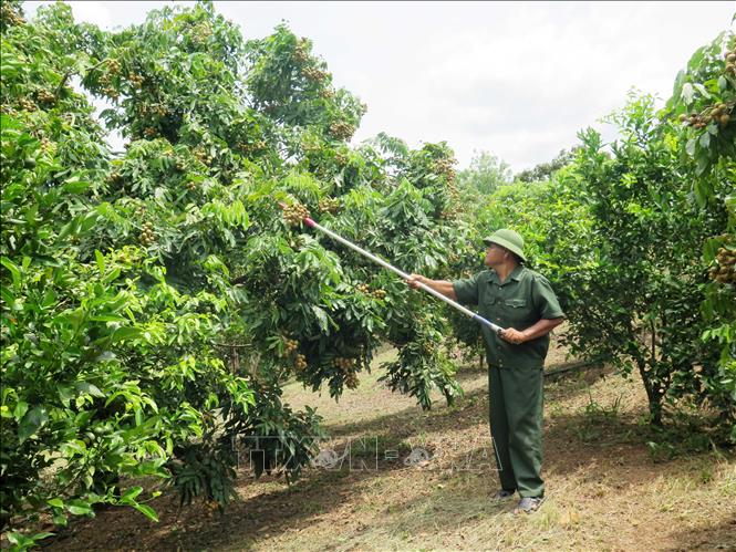 Người dân xã Chiềng Khương, huyện Sông Mã chăm sóc vườn nhãn. Ảnh: TTXVN |
