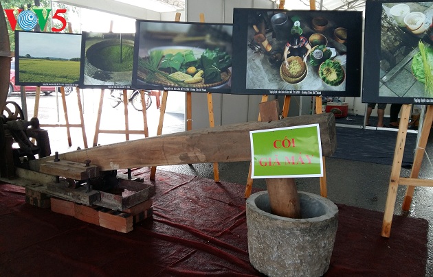 Các dụng cụ làm cốm, lúa nếp cái hoa vàng. ( Ngọc Anh/VOV5)