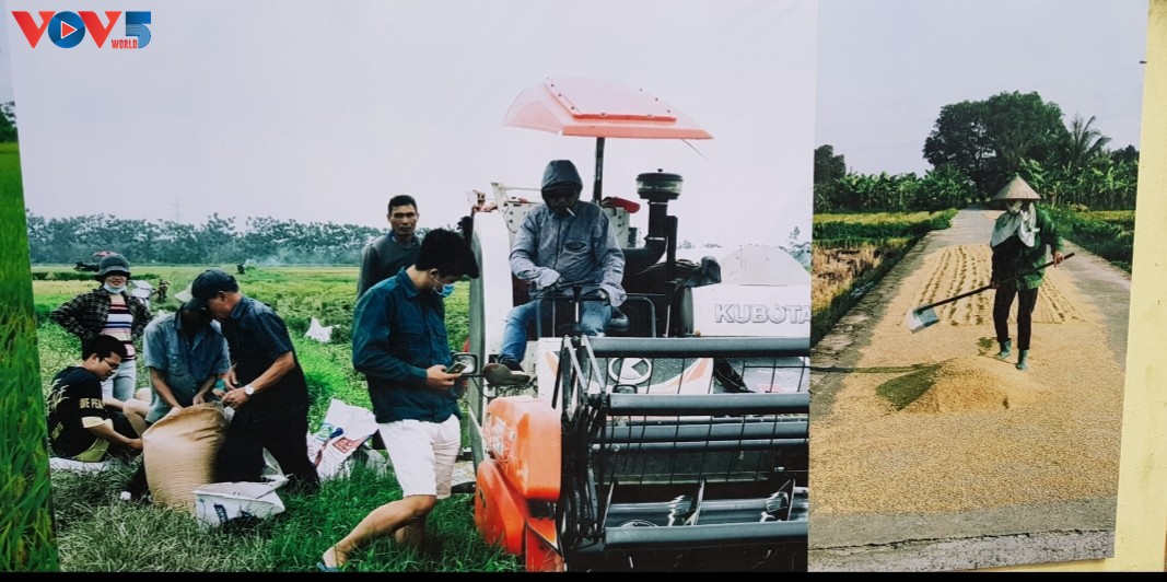 Bức bích họa trên tường mô tả cảnh bà con làm đồng. Ảnh: Ngọc Anh