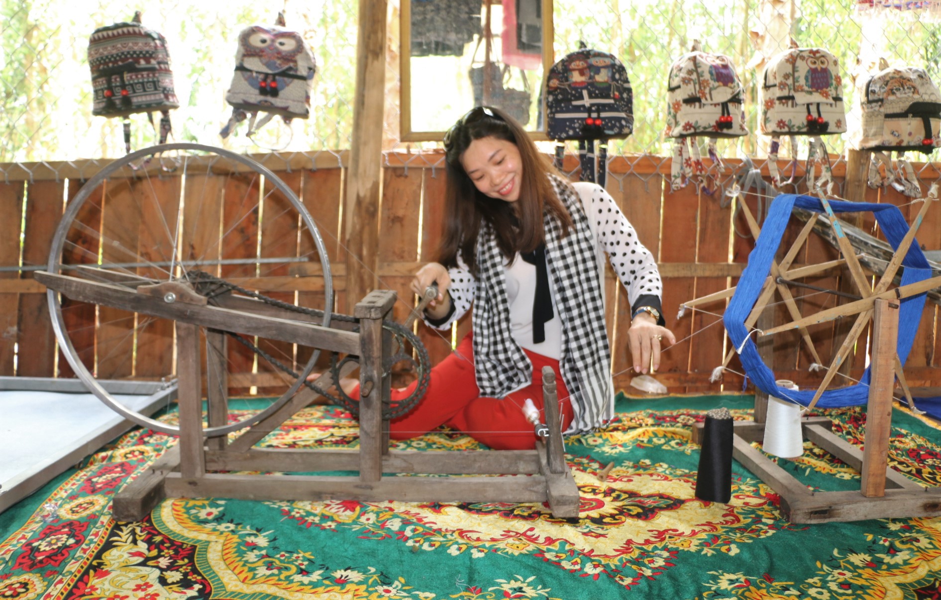 Bà RO MẮK, thợ dệt ở làng Chăm Châu Phong, thị xã Tân Châu, tỉnh An Giang chia sẻ, ngay từ khi còn nhỏ, các cô gái Chăm đã được người bà, người mẹ chỉ cách làm các món ăn, món bánh truyền thống và đặc biệt truyền lại nghề thêu, dệt thổ cẩm, một nghề truyền thống của dân tộc: “Tuy công việc này cực khổ, nhưng mình thấy rất là vui và đây là nghề truyền thống mình, nên mình muốn giữ lại không muốn nó mất đi, dù cực mấy nữa mình cũng cố gắng làm. Ở đây dệt 3 sản phẩm, còn một số sản phẩm nữa là lấy ở chỗ khác về để bầy bán cho khách du lịch và bán cho những người trong làng này.”