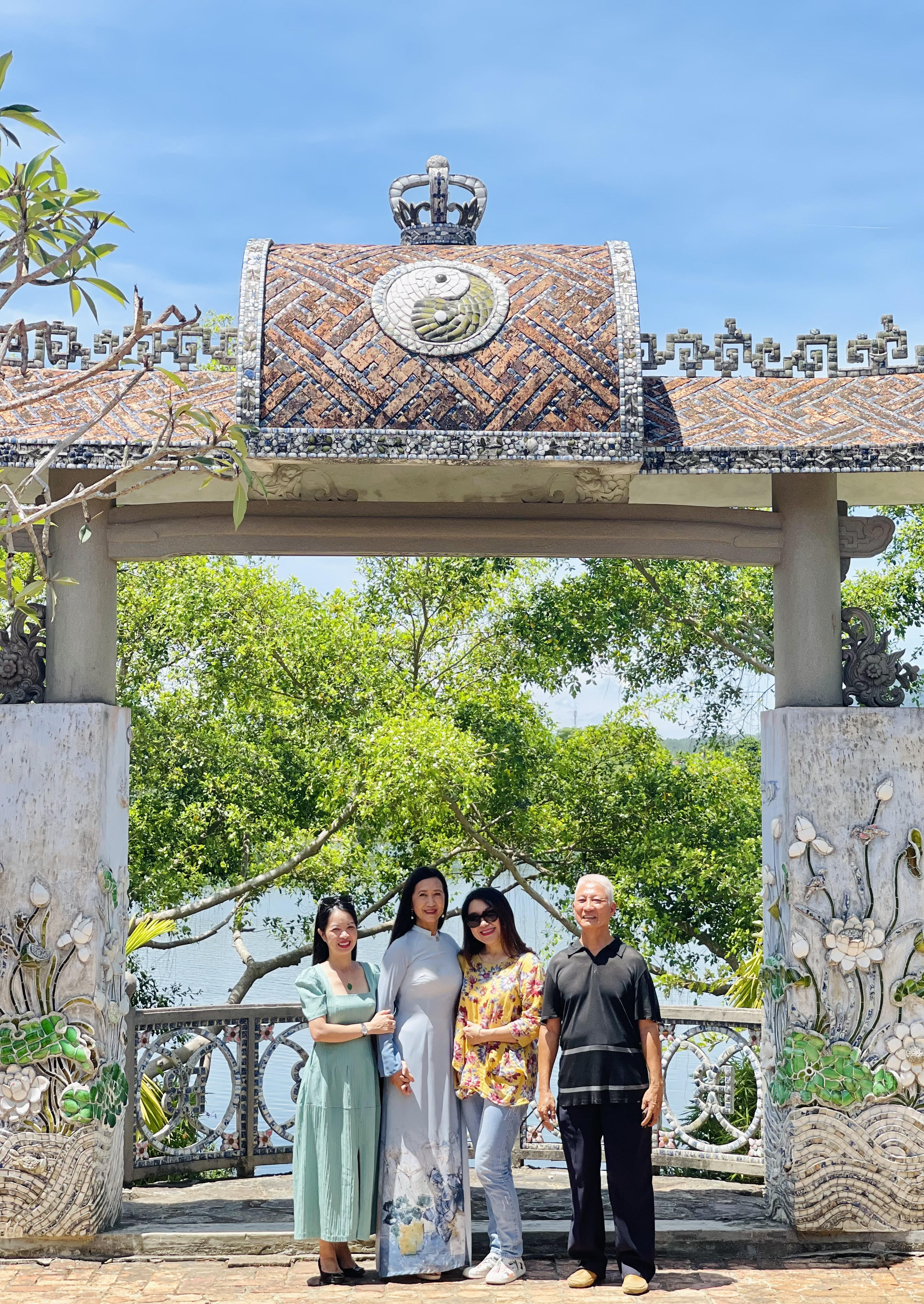 Các phóng viên và vợ chồng nghệ sĩ Camille Huyền - ông Trương Đình Ngộ trong khu nhà vườn ở Huế |