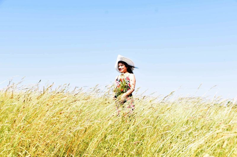 Nhạc sĩ Lê An Tuyên trên cánh đồng hoa cỏ may |