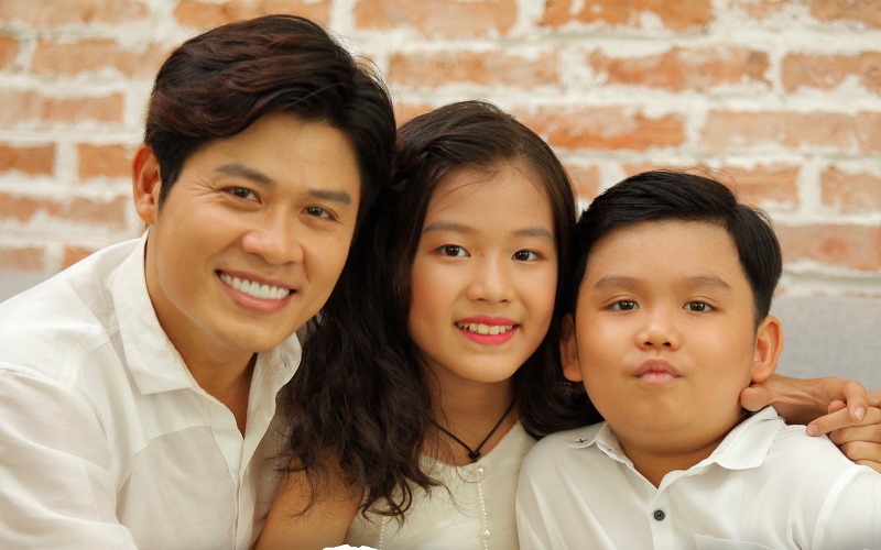 Nhạc sĩ Nguyễn Văn Chung cùng con gái nuôi và con trai |