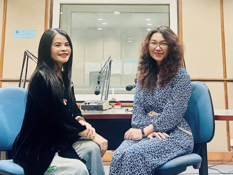 NSƯT Dương Thùy Anh tại phòng thu của VOV