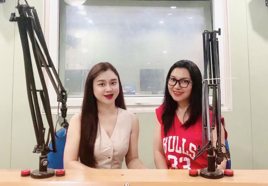 Ca sỹ Sao Mai Phương Nga trong studio của VOV5 |
