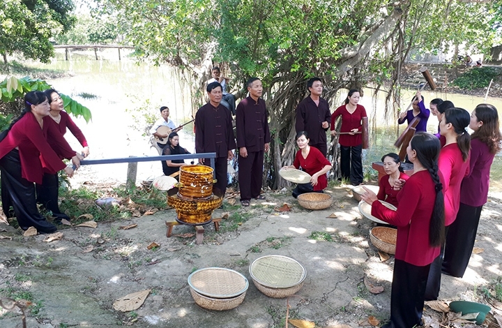 Trình diễn hò khoan Lệ Thủy bên dòng Kiến Giang (Lệ Thủy) - Ảnh: nhandan.com.vn |