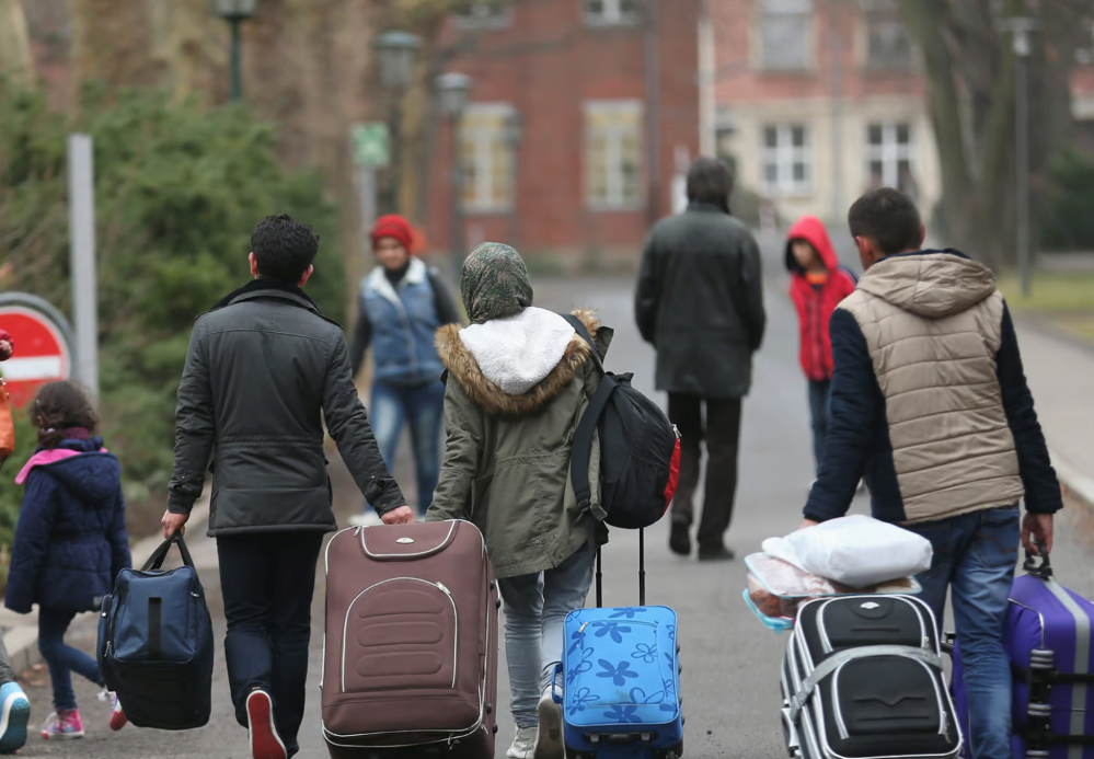 Người dân kéo vali đến Văn phòng Đăng ký Trung tâm dành cho Người tị nạn ở Berlin, Đức. Ảnh: Getty Images |