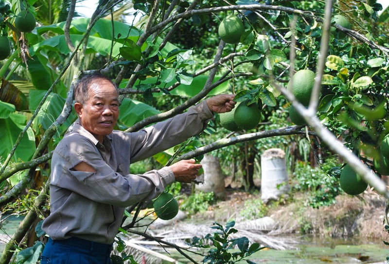 Ông Ba Liêm cải tạo vườn khi rảnh rỗi - Ảnh: VOV