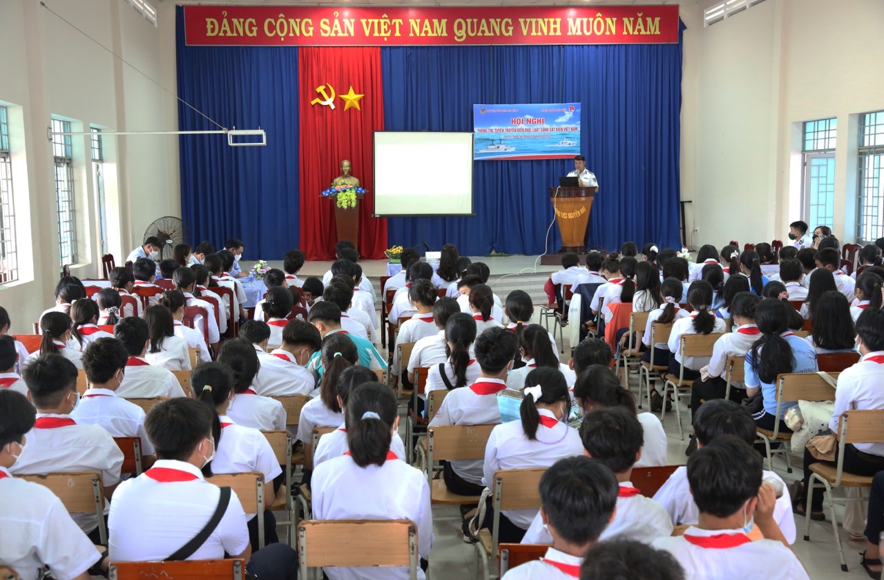 Ngày 7/6, Bộ Tư lệnh Vùng Cảnh sát biển 3 tổ chức thông tin, tuyên truyền về tình hình biển, đảo và Luật Cảnh sát biển cho gần 1000 giáo viên, học sinh của 3 Trường Trung học cơ sở ở thị trấn Long Hải, huyện Long Điền, tỉnh Bà Rịa - Vũng Tàu.