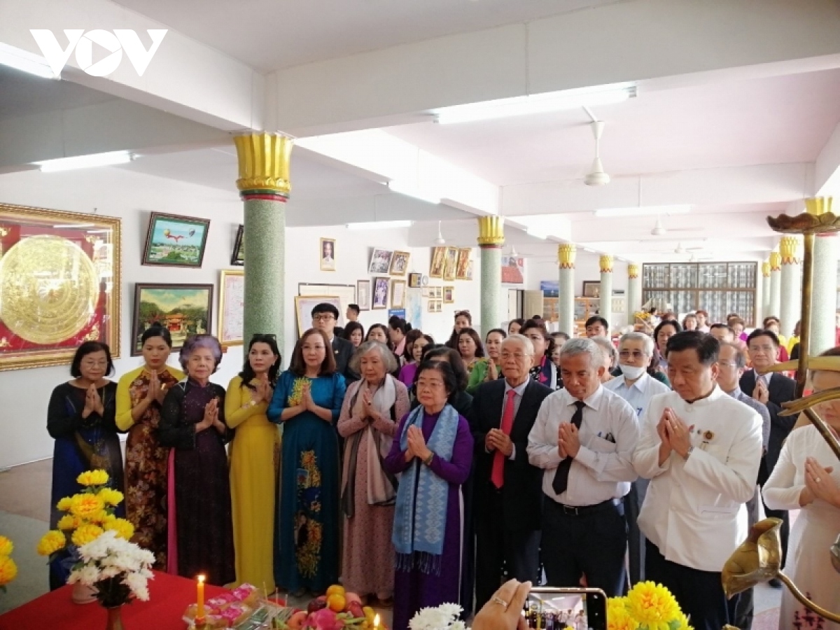Đoàn đại biểu Câu lạc bộ “Vì Hoàng Sa – Trường Sa thân yêu” và đại diện cộng đồng người Việt tại tỉnh Udon Thani tham dự buổi lễ cầu siêu. Ảnh: VOV