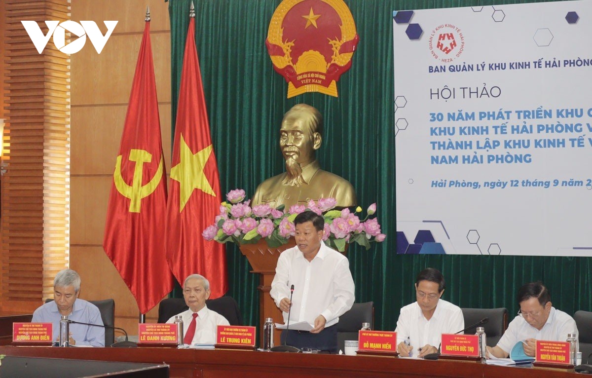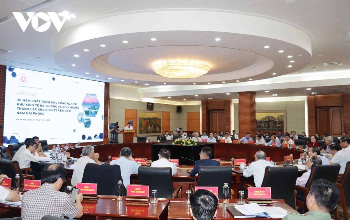 Hội thảo “30 năm phát triển Khu công nghiệp, khu kinh tế Hải Phòng và định hướng thành lập khu kinh tế ven biển Nam Hải Phòng”. Ảnh: VOV