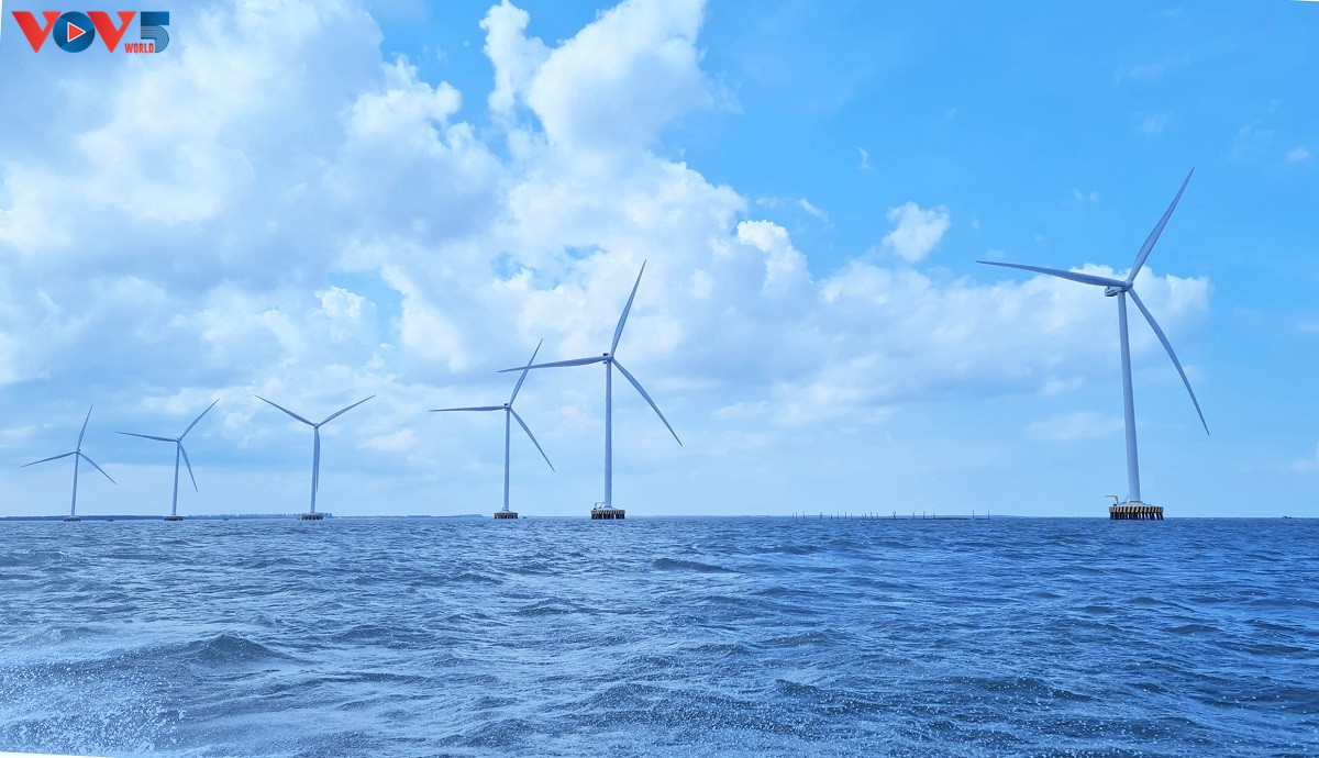 Nhiều dự án điện gió tiếp tục triển khai tại tỉnh Bến Tre. Ảnh: VOV