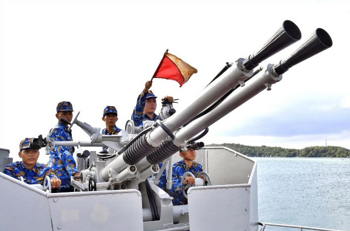 Cán bộ, chiến sĩ Tàu 253, Hải đội 512 (Lữ đoàn 127, Vùng 5 Hải quân) luyện tập xử trí tình huống báo động phòng không - Ảnh: Văn Định |