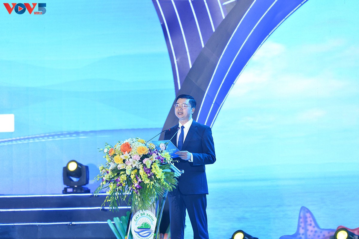 Ông Bùi Tuấn Mạnh, Chủ tịch UBND huyện Cát Hải (thành phố Hải Phòng) khẳng định: Chương trình khai mạc du lịch Cát Bà năm 2023 là lời mời trân trọng du khách trong nước và quốc tế đến với Cát Bà. Ảnh: VOV |