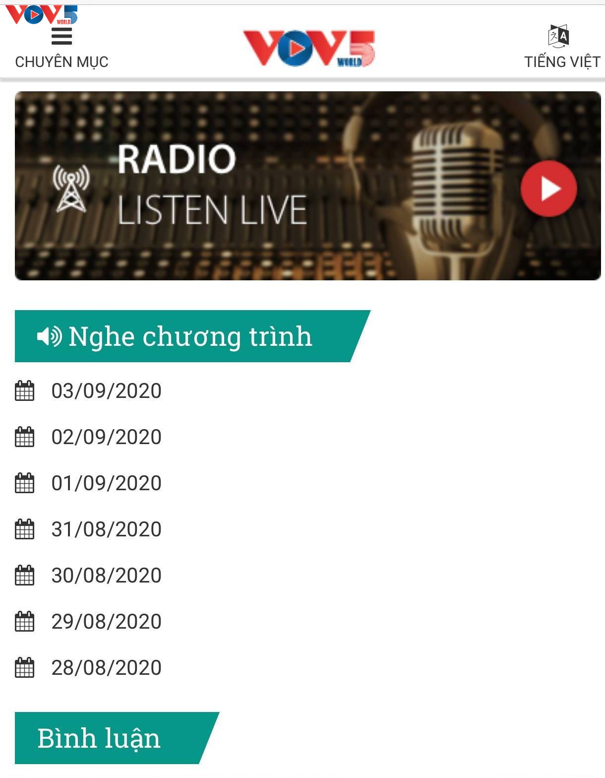 Nghe trực tiếp các chương trình FM của VOV5 trên giao diện điện thoại di động. |
