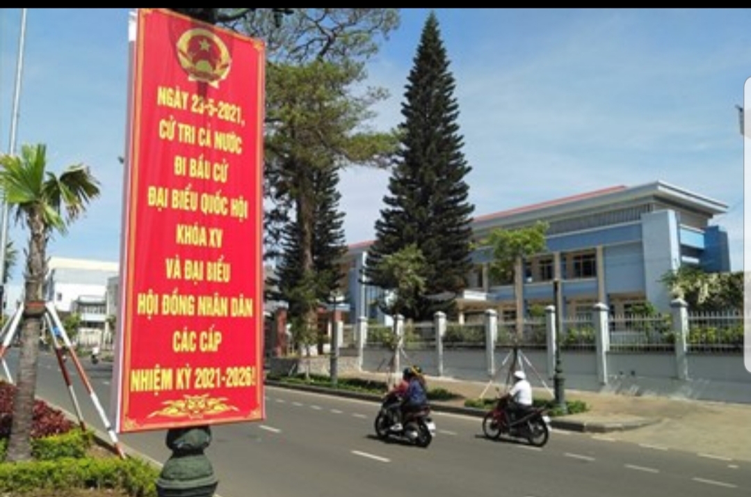 Ảnh 1: Khẩu hiệu tuyên truyền bầu cử trên đường phố ở tỉnh Gia Lai. |
