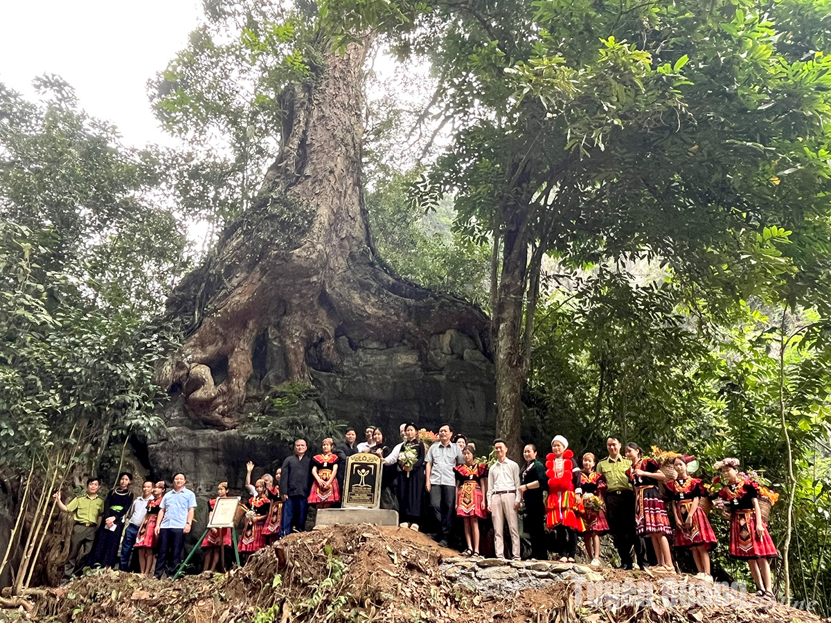Cây Nghiến cổ thụ bậc nhất của tỉnh Tuyên Quang tại địa bàn xã Phúc Yên, huyện Lâm Bình vừa gắn biển cây Di sản Việt Nam. Ảnh bao Tuyenquang.vn |