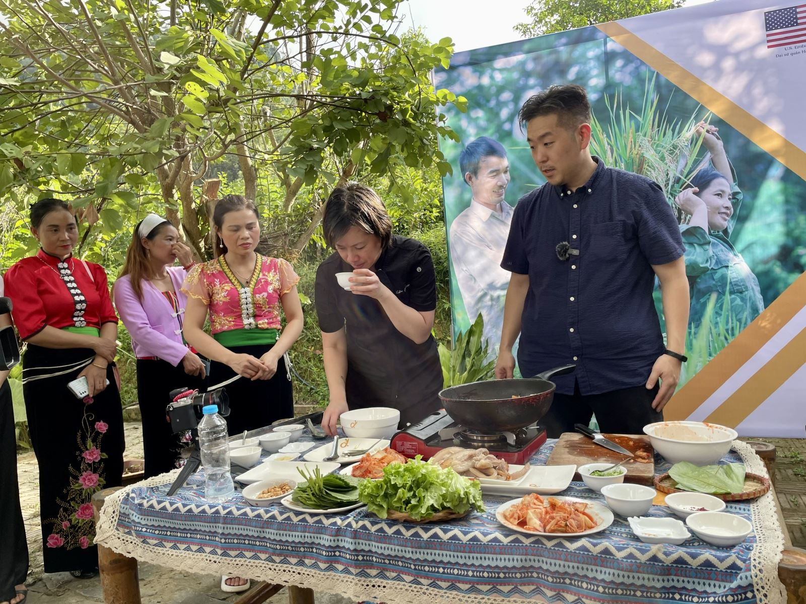 Christine Hà trổ tài nấu bếp với phụ nữ dân tộc ở Sơn La.