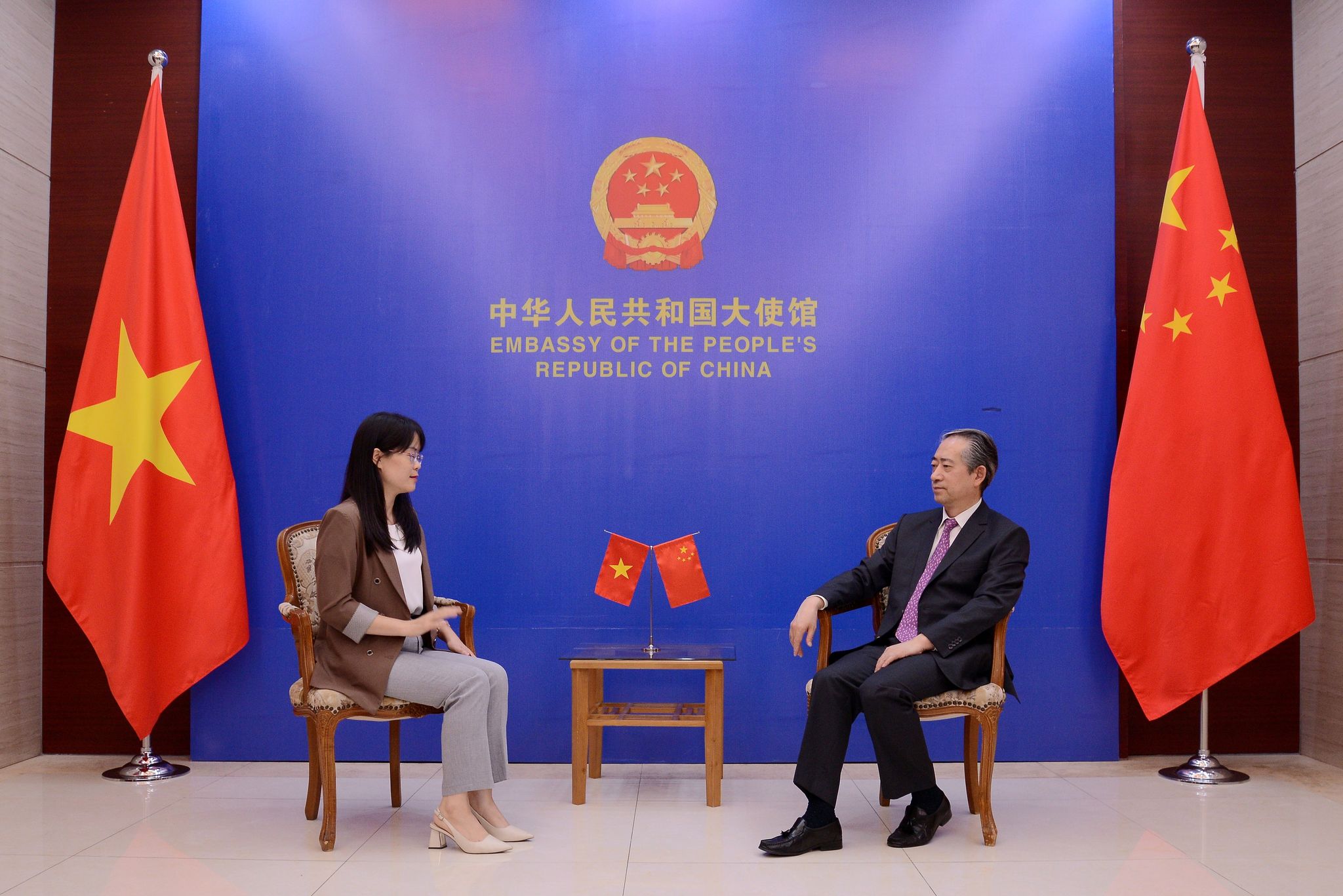 Giao lưu giữa nhân dân hai nước tuy rằng bị ảnh hưởng của dịch Covid 19 có giảm một chút, nhưng chúng ta đang cố gắng khôi phục lại. Hiện nay giữa Trung Quốc và Việt Nam mỗi tuần đều có 19 chuyến bay bay từ 7 thành phố giữa hai nước. Chúng tôi tin rằng song song với sự kiểm soát dịch Covid 19 thì việc giao lưu của nhân dân hai nước chúng ta sẽ dần được khôi phục lại.
