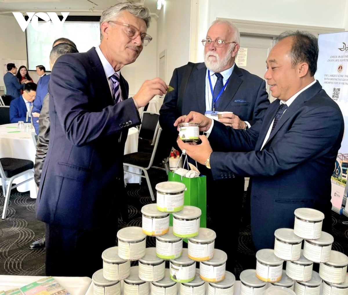 Ông Nguyễn Quang Duy giới thiệu sản phẩm với đối tác nước ngoài |