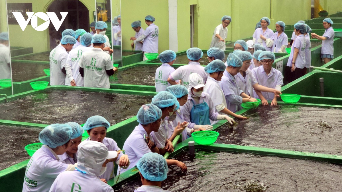Trước kia, chúng tôi chỉ có thể lấy các sản phẩm loại 1, loại 2 rong tươi để xuất khẩu, còn loại 3 đến loại 5, loại 6 phải bỏ. Bây giờ, chúng tôi mua hết toàn bộ các loại sản phẩm, chính vì thế bà con không bỏ phí, mỗi tháng, thay vì bà con kiếm được 15 triệu đồng nay kiếm thêm 5 triệu đồng nữa. Những sản phẩm đó, chúng tôi làm thạch rong nho, snack rong nho, atiso rong nho... Từ đó, bình quân 1 héc ta, bà con thu nhập khoảng 35 triệu đồng tiền lãi/ tháng.