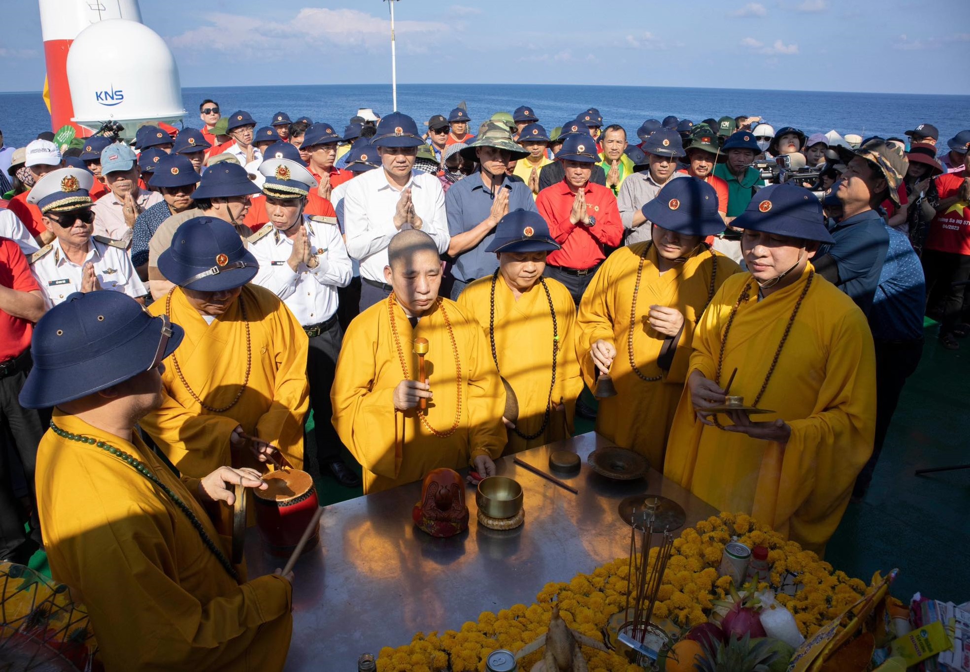 Đoàn công tác số 4 năm 2023 tổ chức lễ tưởng niệm các anh hùng liệt sĩ hy sinh trên quần đảo Trường Sa. Ảnh: Vũ Đình Thắng. |