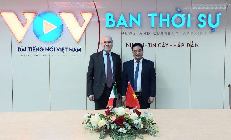 Đại sứ Italia Antonio Alessandro và Ông Vũ Duy, trưởng ban Thời sự VOV1 |