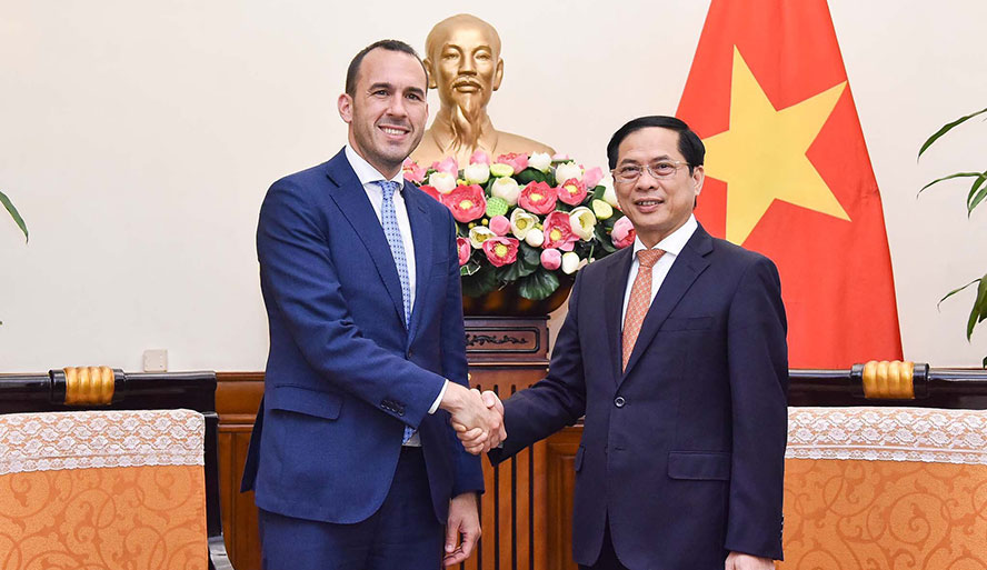 Bộ trưởng Bộ Ngoại giao Bùi Thanh Sơn và Thứ trưởng Ngoại giao Italia Manlio Di Stefano. Ảnh Kim Phượng