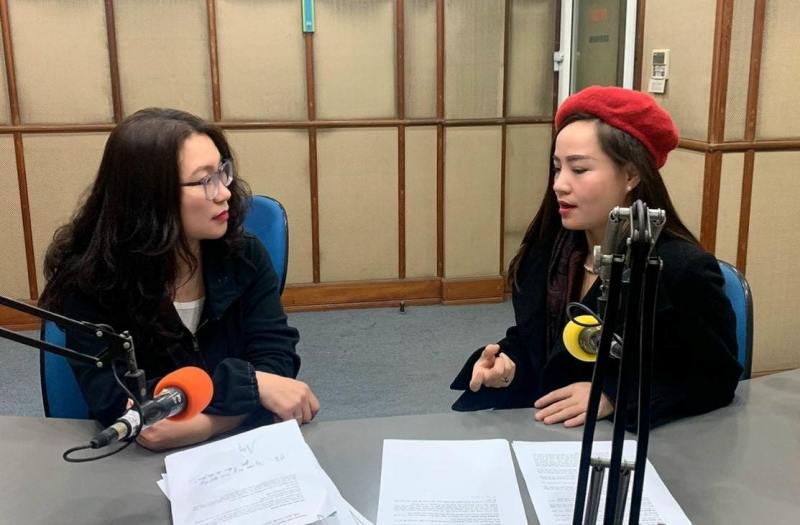 TS âm nhạc Đinh Hoài Xuân (bên phải) trò chuyện cùng BTV Bảo Trang