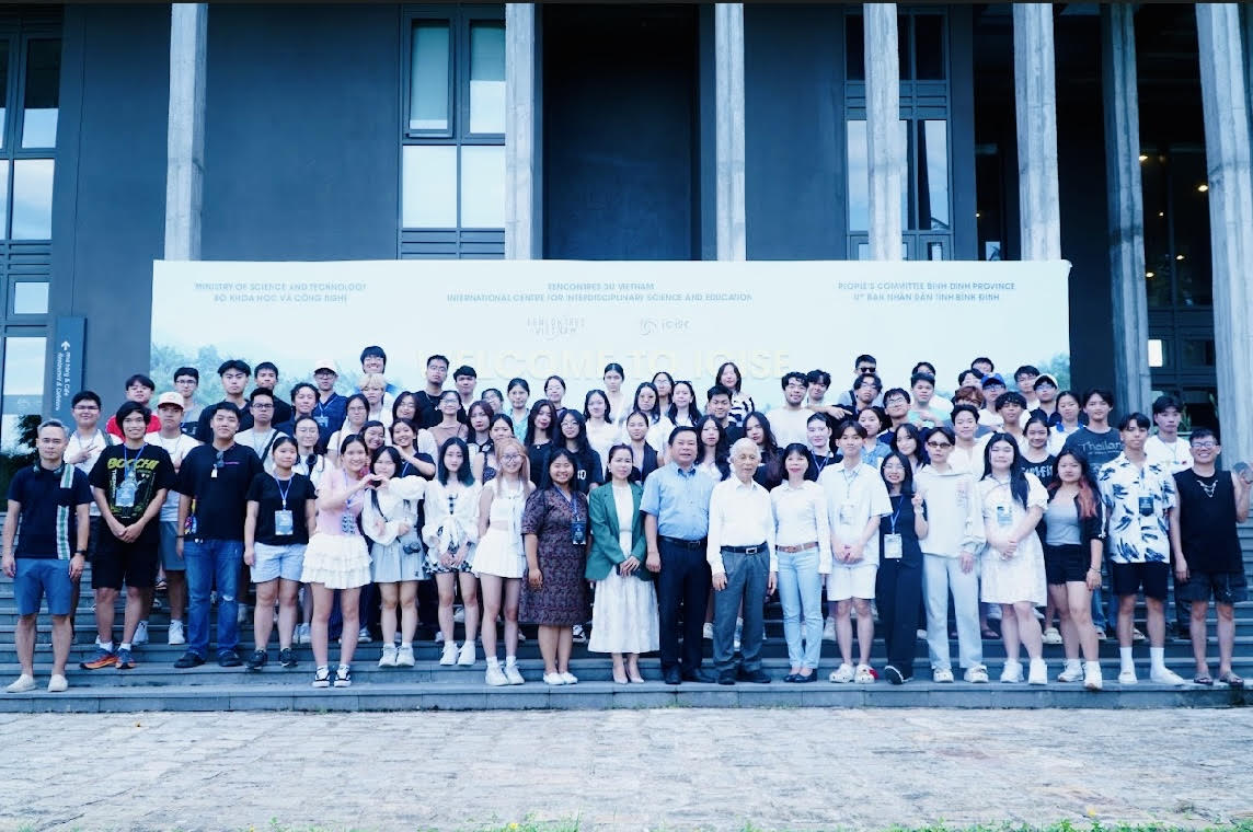 Đoàn Trại hè Việt Nam 2024 chụp ảnh lưu niệm cùng GS Trần Thanh Vân, kiều bào Pháp - người sáng lập Trung tâm Quốc tế Khoa học và Giáo dục Liên ngành