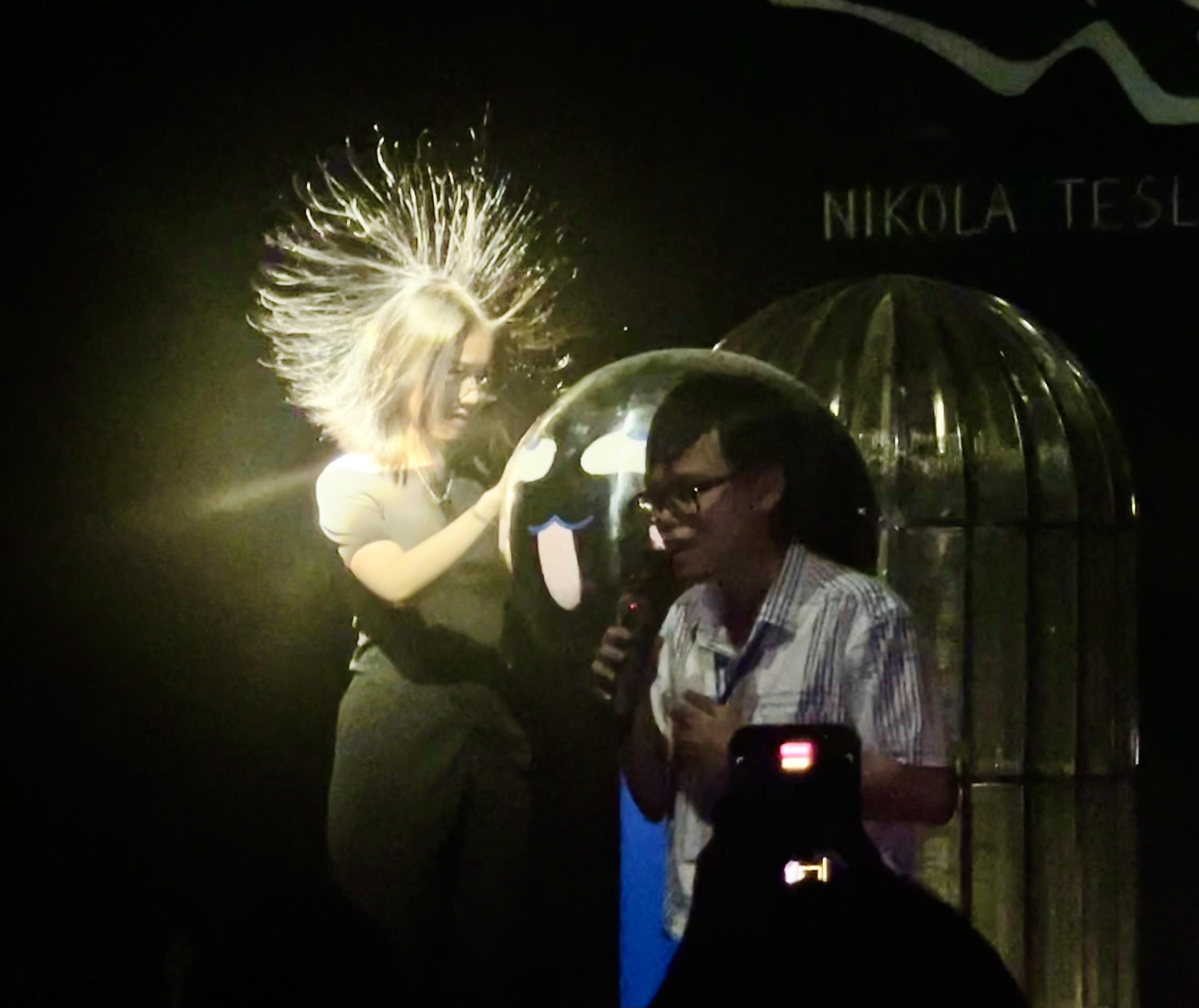 Thí nghiệm dựng tóc - một trải nghiệm thú vị cho các du khách khi tới đây