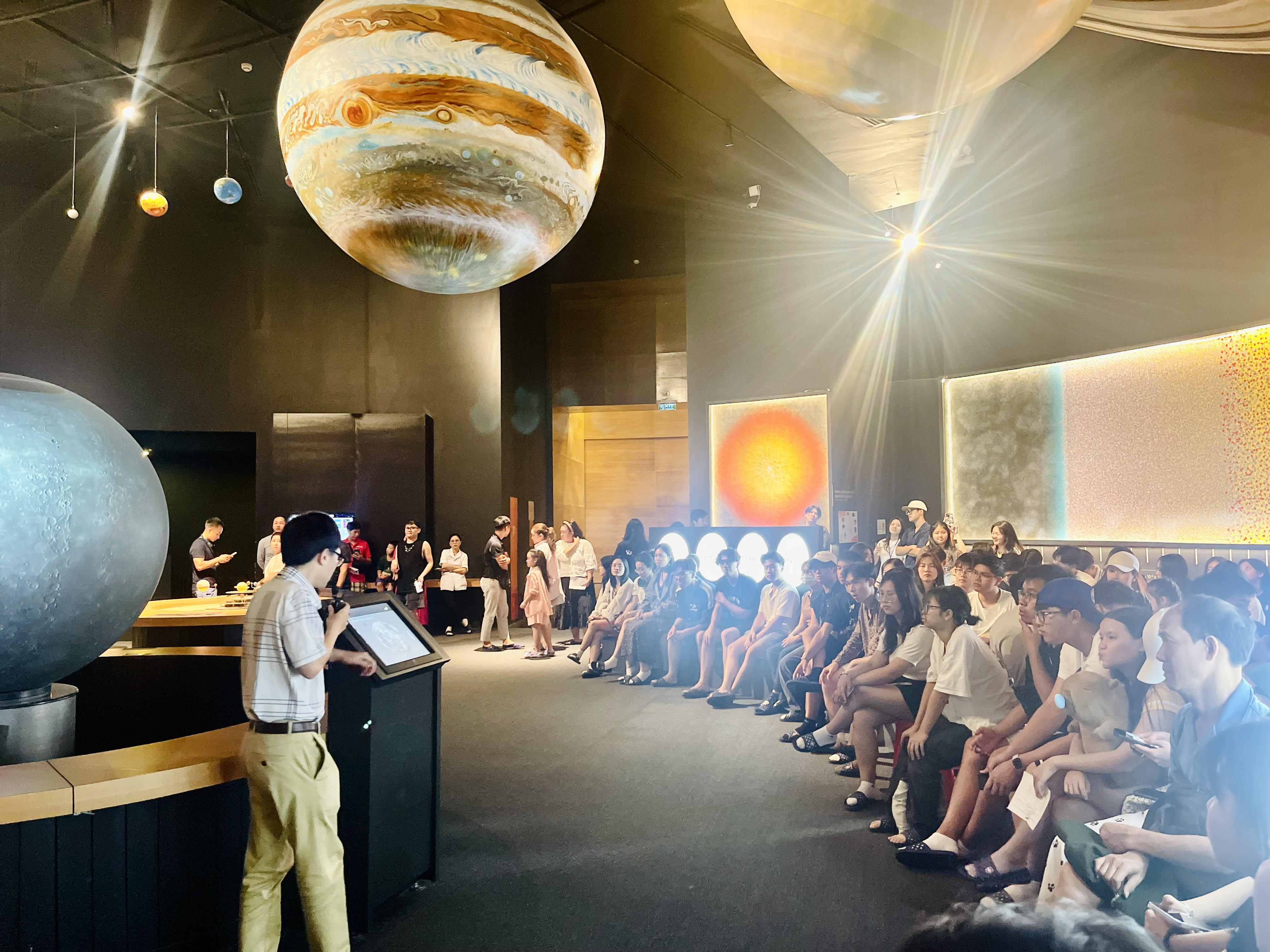 Ông Nguyễn Ngọc Hóa: Thực sự chúng tôi rất mừng khi các bạn có suy nghĩ như vậy. Chúng tôi luôn muốn rằng hoạt động của trung tâm phải đa dạng về nội dung. Muốn như vậy thì sẽ cần nhiều nguồn nhân lực, trong đó nguồn nhân lực là điều quan trọng nhất để vận hành Trung tâm này. Hiện nay Trung tâm có một đài thiên văn tham gia vào mạng lưới nghiên cứu quốc tế. Chúng tôi cũng đã có một vài bài báo xuất bản trên các tạp chí uy tín - đây là cũng là một cơ hội rất tốt cho các em muốn nghiên cứu, thực tập ở đây. Còn đối với các em có mong muốn đóng góp cho trung tâm thì đó là điều quá tuyệt vời. Trung tâm sẽ có những đề xuất về chủ trương thu hút nhân lực, có thể sẽ có một số ưu đãi hơn so với những người cán bộ trong nước đang làm việc tại đây.