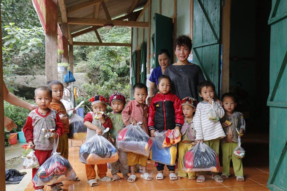 | Bà Chung Lê và các em nhỏ tại điểm trường mầm non Sùng Vui, Bát Xát, Lào Cai |