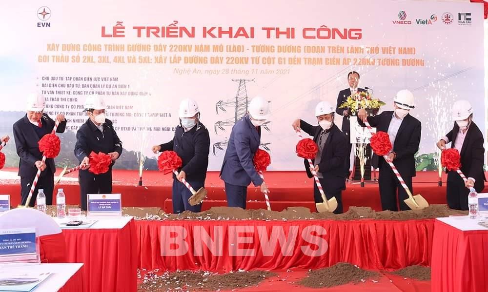 Ngày 28/11, tại xã Na Ngoi, huyện Kỳ Sơn, tỉnh Nghệ An, Tập đoàn Điện lực Việt Nam (EVN) và Ban Quản lý dự án Điện 1 tổ chức lễ triển khai thi công xây dựng công trình đường dây 220kV Nậm Mô (Lào) - Tương Dương (đoạn trên lãnh thổ Việt Nam).