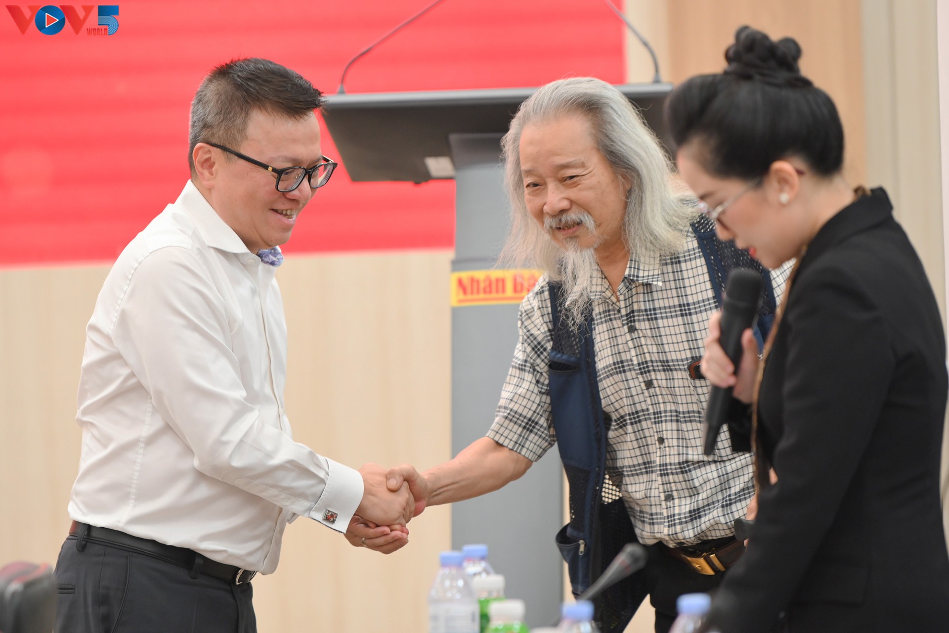 Buổi lễ còn có sự góp mặt của Nhạc sỹ, hoạ sỹ Văn Thao, con trai của cố nhạc sỹ Văn Cao. Tại đây, ông không giấu được niềm xúc động và tự hào khi nhắc đến người cha của mình và bài hát "Tiến quân ca".